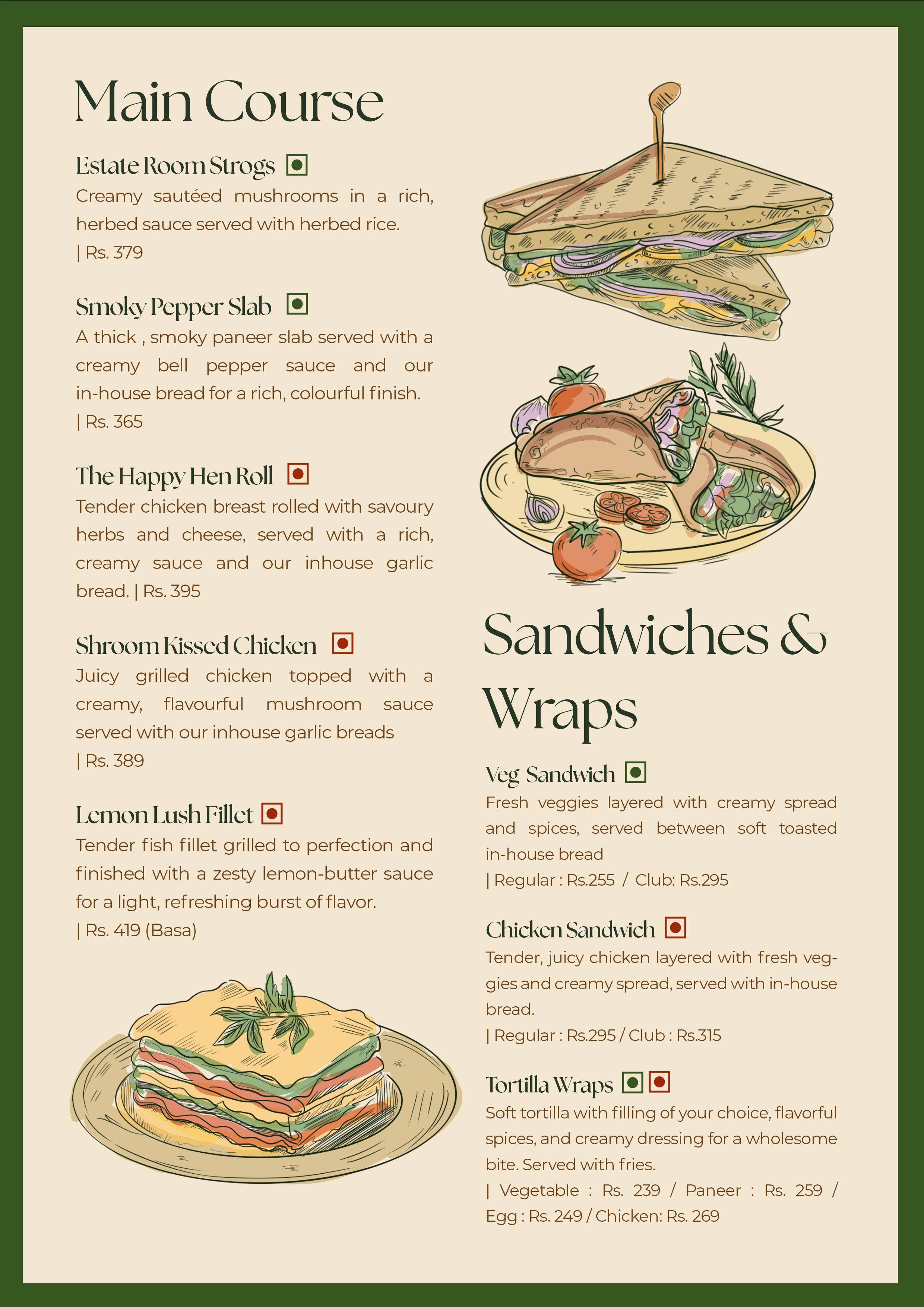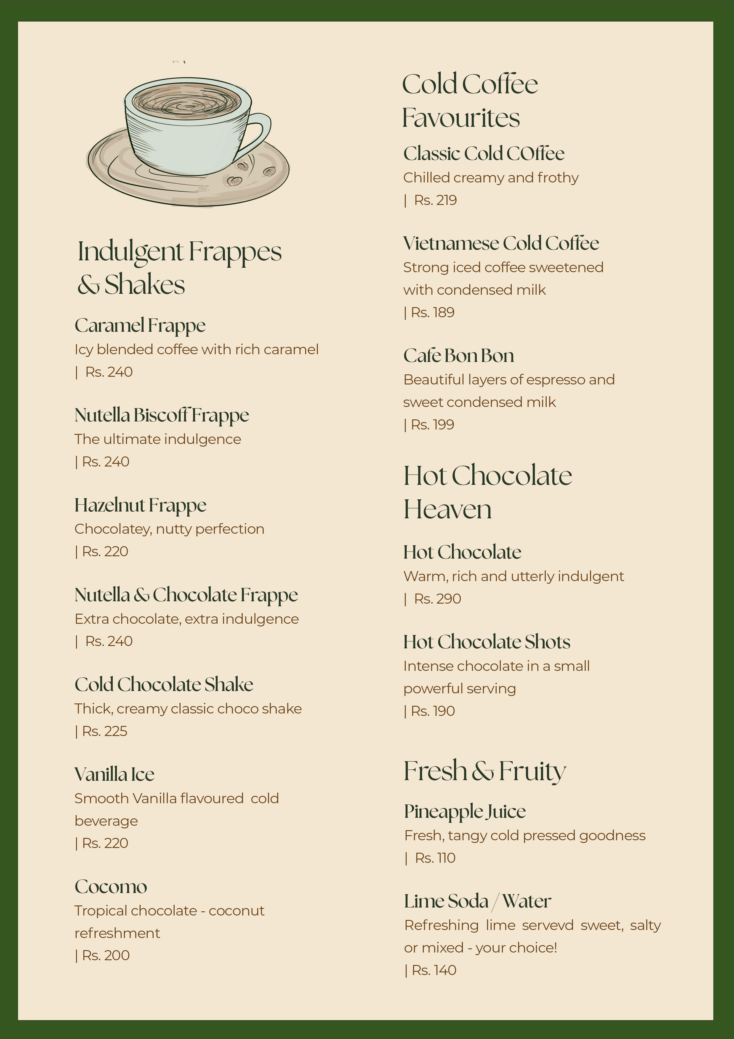 Dine In Menu